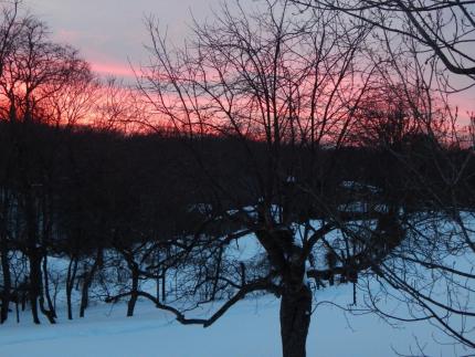 As is our annual practice, some of us gathered at the Meditation Shelter in the night of December 31 for a time of quiet, bringing whatever was in our hearts. Once again we walked through a moon-bathed forest to the Shelter, aglow in candlelight and warmed by the wood stove. The Shelter has wonderful acoustics, and I was eager to hear the sound of us singing in it. I had brought a new song, a simple chant from West Africa, that I learned from Michael Meade's new cd A Song Is a Road. It is called "Azima", and it is a song in praise of the Earth. But before (and in between) our singing it, I had a few reflections to share. Below is an adaptation of those thoughts: