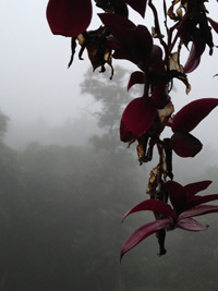 This morning the mist returned. This time it didn't curl and wisp so much as descend and envelop. Not quite fog, still it was thick enough to wrap much in mystery. As everyone knows by now, mist is one of my favorite forms of the water element we have watched so persistently emerging from the rock wall. It's not wholly water though. Mist's essential trait is that it is neither water nor air; it is an in-between being.