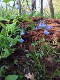 Last Saturday, a small group of us, three young families and a couple oldsters, wandered down the trail we Still Pointers know well, the one that goes to the river and then winds up to the waterfall on Rocky Branch. The day was one of fitful clouds, cool, flirting with rain. When we reached the bend where the trail turns parallel to the river, there appeared bluebells, a riot of them, almost as far as we could see, spilling under and over logs, around boulders, an avalanche of brilliant blue splendor. The children squealed. As if that wasn't wonderful enough, even more thrilling to some of our number was the discovered presence of trillium and trout lilies blooming in delicate profusion amid the rocks and watery edges.