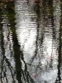 Once around this time of year I walked alone into that creek valley, where there is a small pool in the bend of Deer Spring Creek. I was headed past this, on my way to the Meditation Shelter, when I heard an eerie racket, like banshees in an argument, or ravens in battle. A few yards away from the pool, I stopped in my tracks. The usually still water was roiling and frothing, embroiled in a mini-tempest, a witch's bubbling cauldron. I took a step or two closer and then, as if an invisible hand had abruptly dropped a veil over the scene, all was still. The pool returned to its looking glass state and was profoundly quiet. I waited. Nothing moved except the occasional water skimmer. Then I glimpsed a small brown back just under the water surface; then another. I slowly backed off and went on my way.
