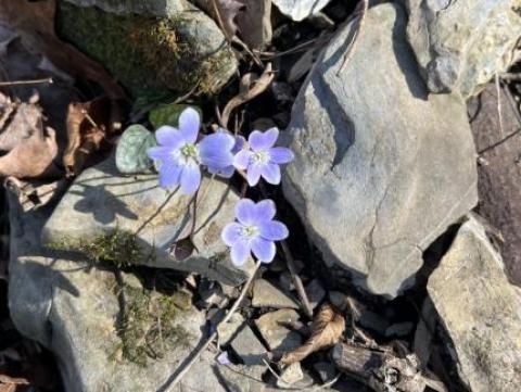 The moon tonight is nearly full, luminous above the rooftops, and shining through the high window above my kitchen. My village friends, keen observers of the wide night sky overhead, keep us alerted about comets, planetary conjunctions, and bright stars. Wednesday morning as a few of us weeded the garden beds in preparation for spring planting we were aware of the red-bellied woodpeckers providing percussion for songbirds celebrating the sun. Spring ephemerals are emerging, as noted by a Shepherd Village member as she walked along a trail leading down a hill toward the old canal and the river. She sent notice to the whole Shepherd Village community, knowing we would be entranced, “These Hepaticas were on the Ferry Hill Trail, just across the river yesterday”. My grandson, visiting over the weekend, found a quiet place to read under the welcoming branches of the towering fir tree in the graveyard adjacent to the north end of the village, a grandmother tree many of us walk by and greet daily. Wild nature, ancient and original nature, simply admiring itself.